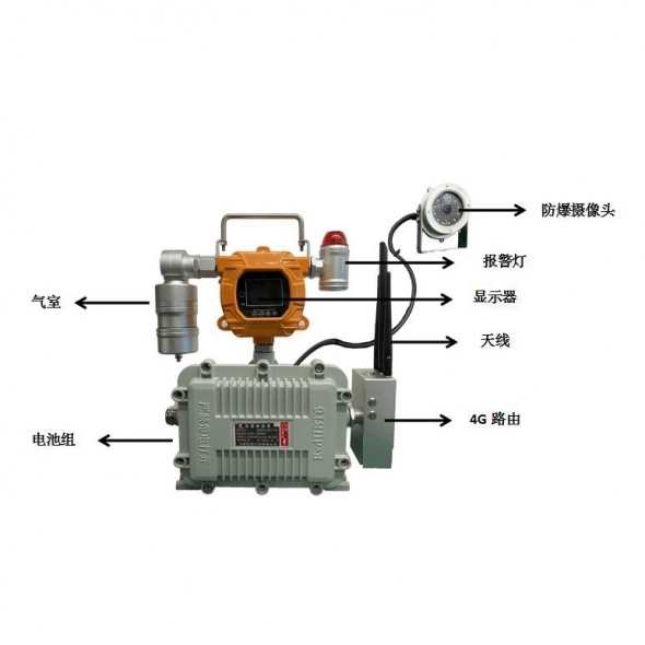系統產品清單 系統由區域監測主機,區域監測中繼,便攜氣體檢測儀、攝像頭、移動APP及云平臺等部分組成。示意圖如下: