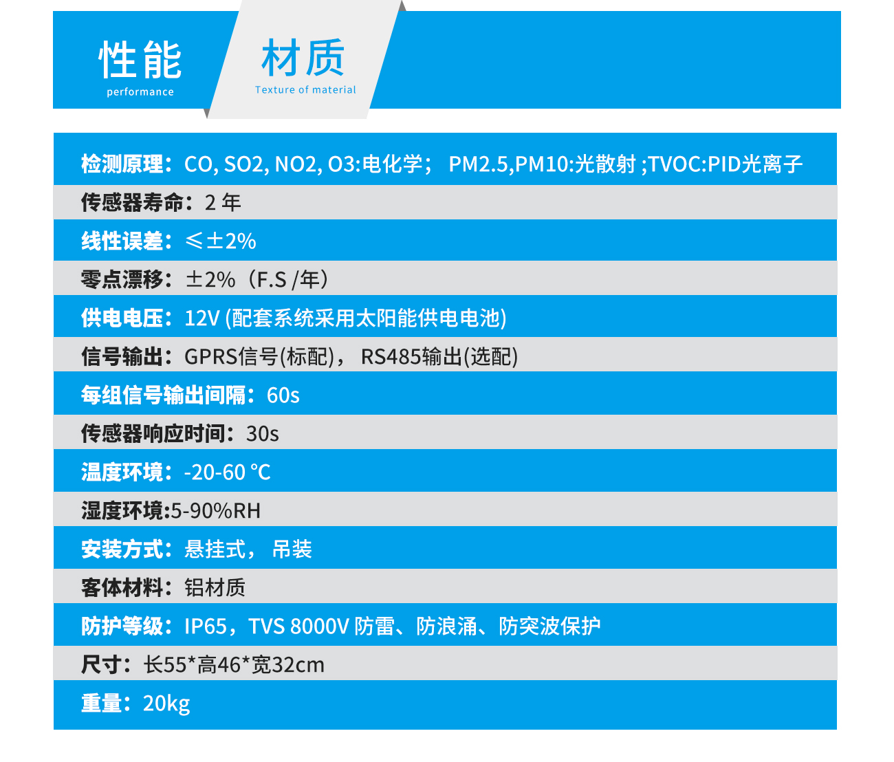 大氣網(wǎng)格化空氣監(jiān)測站產(chǎn)品參數(shù)表